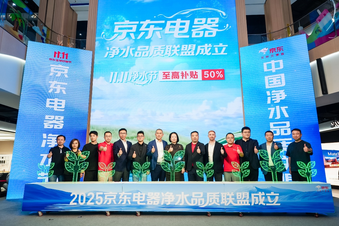 10月16日,以“好水润万家 健康好生活”为主题的2025京东电器净水战略发布会暨11.11净水节正式启幕。京东MALL、京东电器城市旗舰店联合安吉尔、沁园、美的、COLMO、海尔、卡萨帝、A.O.史密斯、怡口、飞利浦、3M、碧水源、方太、老板、西门子、BOSCH、碧云泉、苏泊尔、九阳、康丽根、西屋等20家国内外一线净水品牌,共同成立“中国净水品质联盟”,推出净水八大消费观倡议,在线下门店打造“真机、真水、真演示”净水全体验,推动家用净水从“一杯净水”向“全屋净水”跨越。